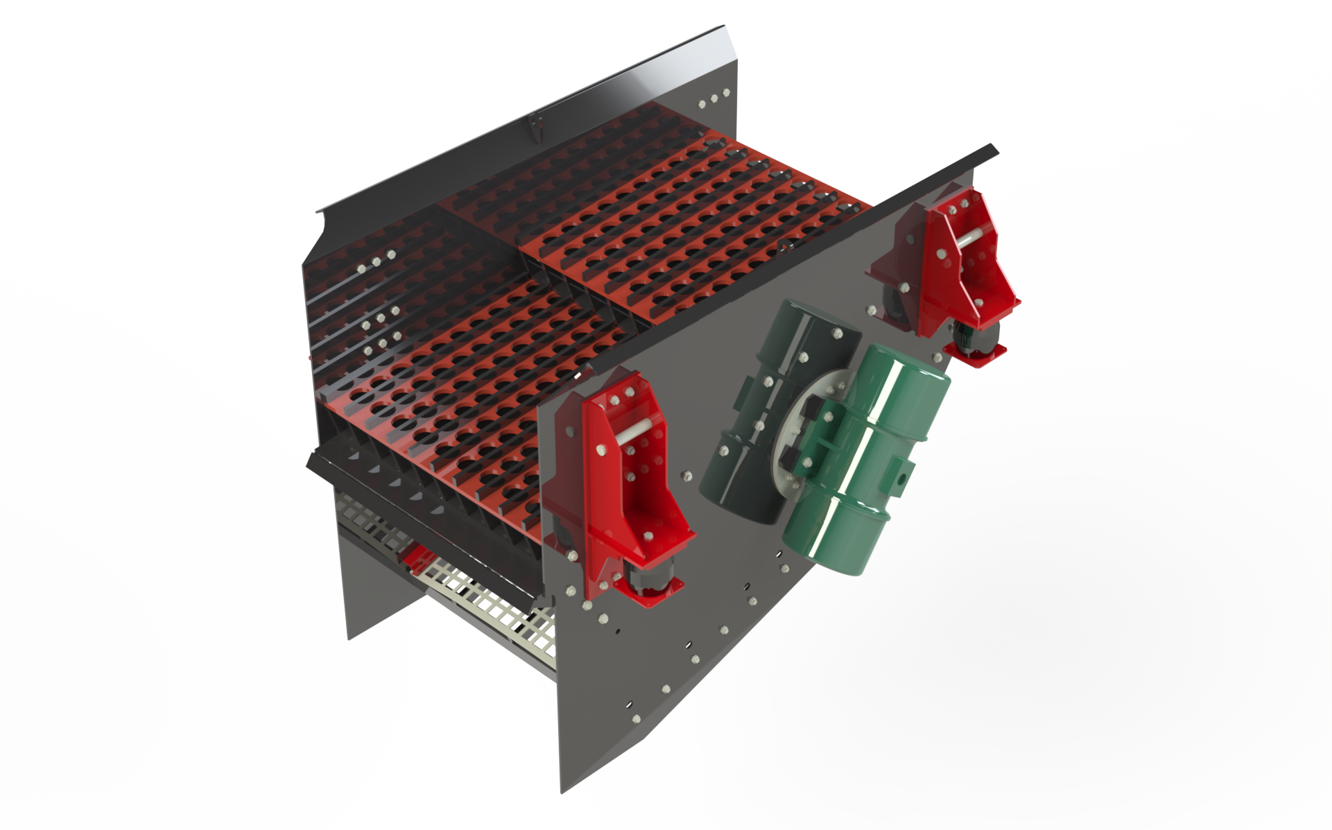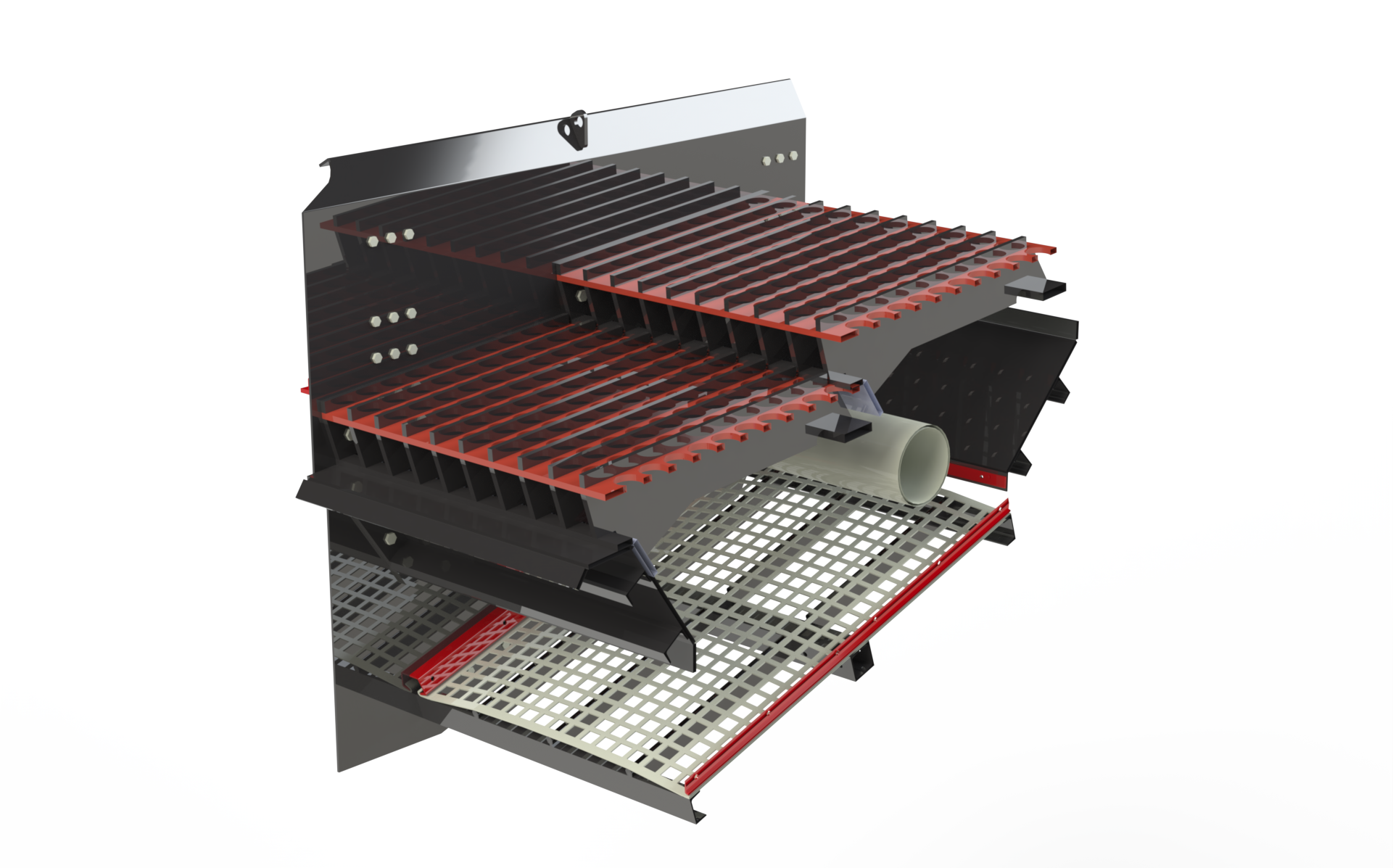 الشبكات مصنوعة من سبائك الفولاذ "الأوستنيستية" عالية المنغنيز ويمكن تعديل حجم المواد التي تم تمريرها من خلال تعديل تباعد الشبكة بسهولة.