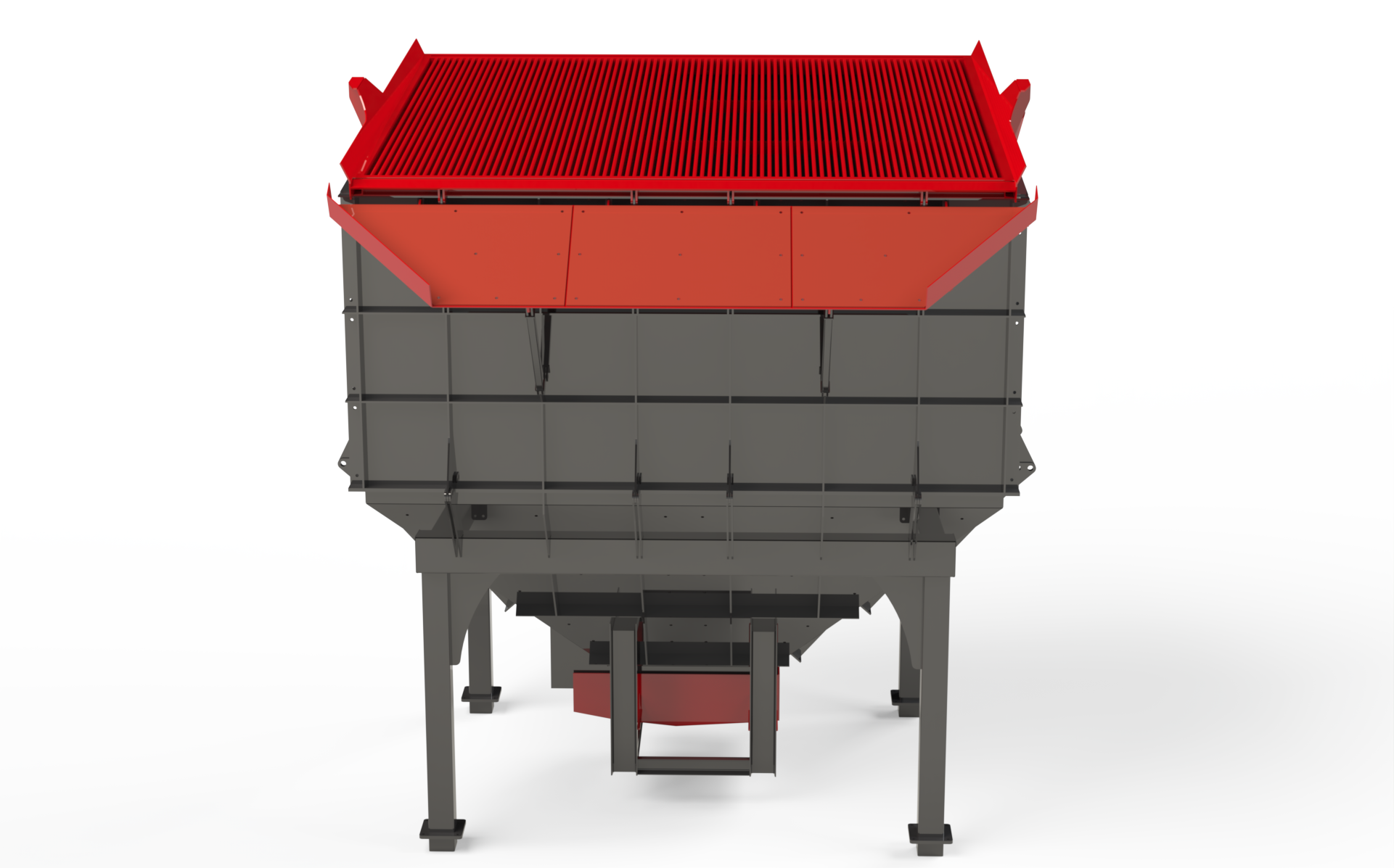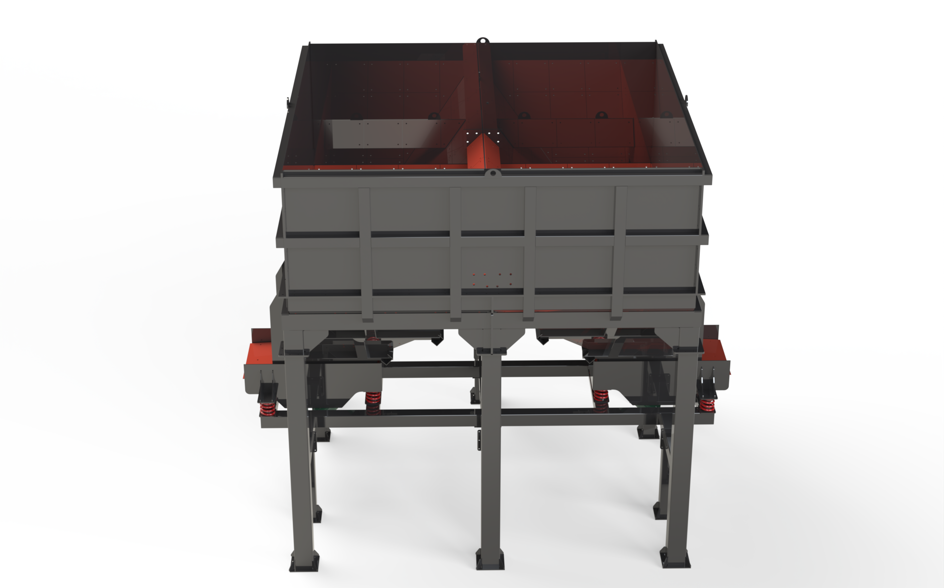 يتم تعبئة قبو المغذي بشاحنة أو دلو أو نظام حزام ناقل ، ويمكن تغذية المواد بشكل منتظم مباشرة إلى الحزام الناقل أو الغربال أو الشاحنات بفضل حوض الاهتزاز.