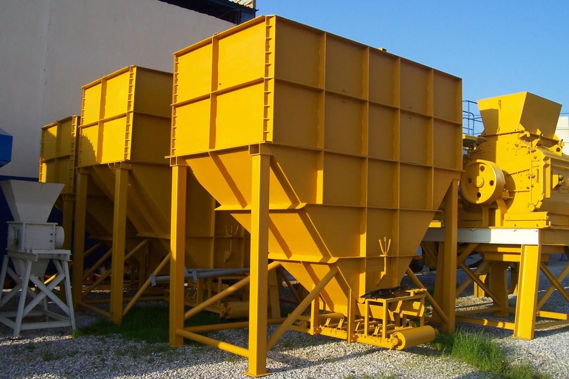 هذه هي المستودعات التي يمكن أن يتراوح حجمها بين 25 و 100 متر مكعب ، والغرض منها هو تخزين الرمال والحصى والركام ، والتي تسمح بتحميل أو تخزين هذه المواد دون ملامسة الأرض.
