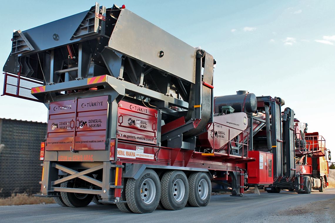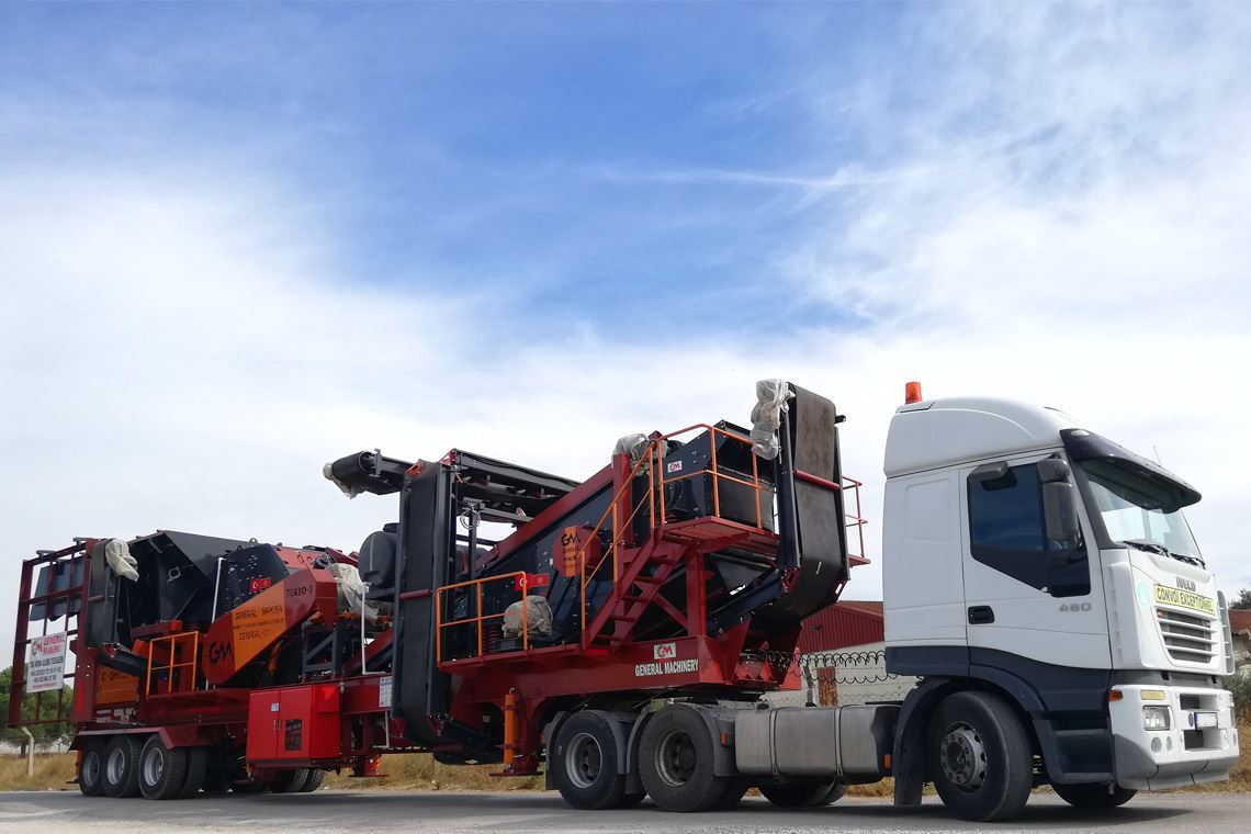 جنرال 01 محطة كسارة متنقلة ، وهي عبارة عن محطة تكسير وغربلة ذات دائرة مغلقة ؛ إنها مناسبة لمقالع الحجارة التي تغذي مواقع بناء الطرق والخرسانة والأسفلت.