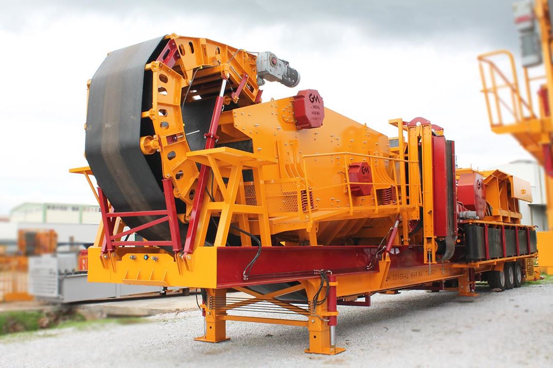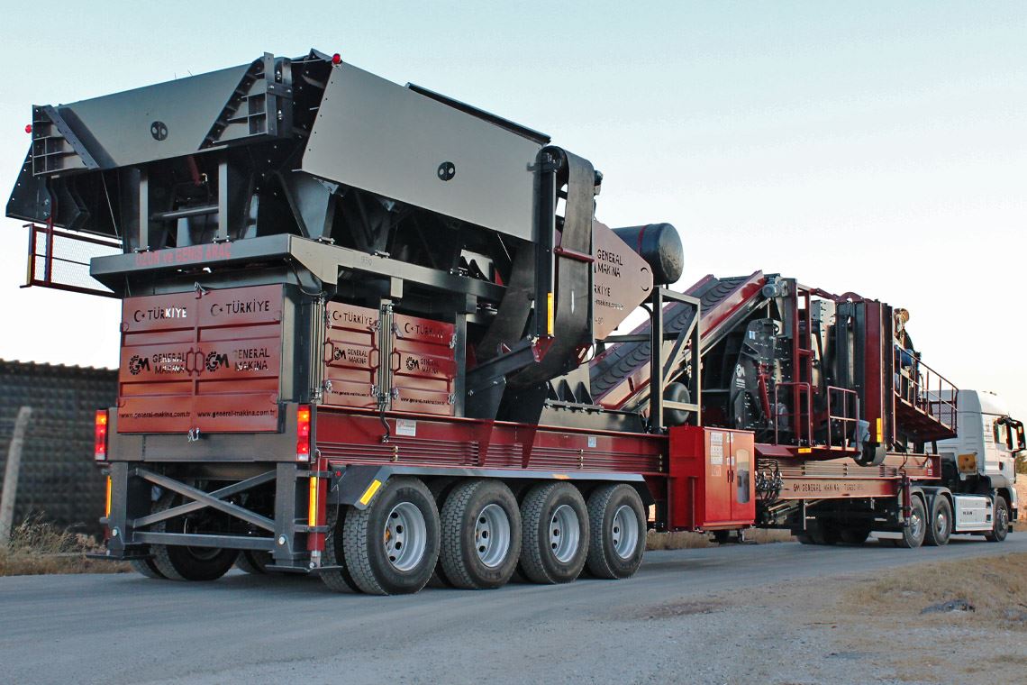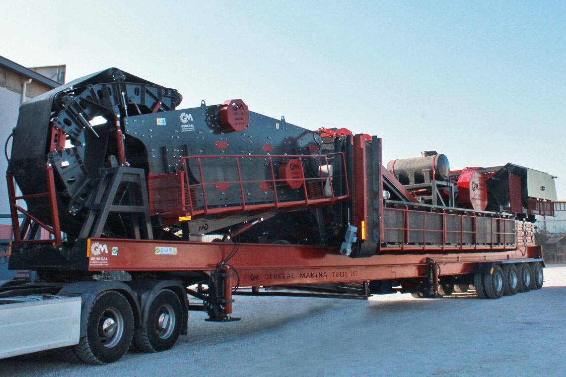GENERAL 950 Sistema de trituración de circuito cerrado; todo el sistema está puesto en una sola plataforma y se puede transportar por 1 camión.