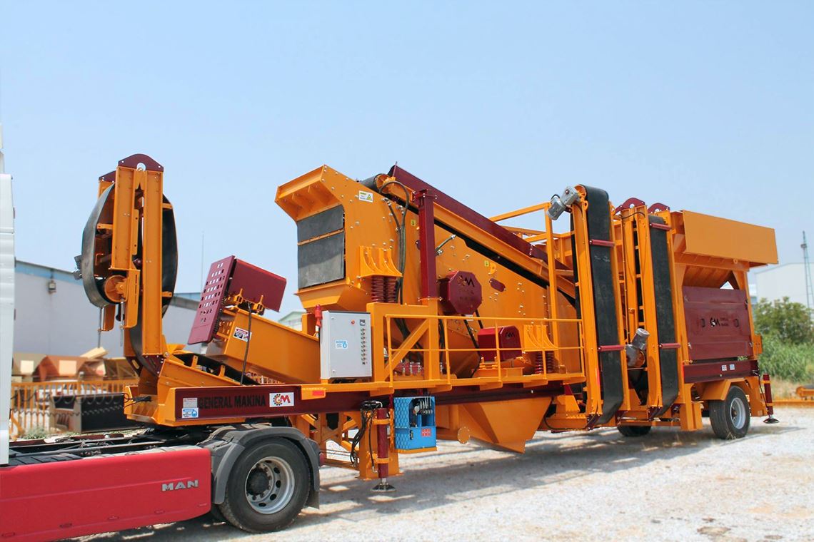 Las unidades móviles de lavado y cribado de tipo GNR YM1240 se utilizan para el cribado de arena de 40 toneladas/hora de capacidad a 300 toneladas/hora de capacidad para arena de río y montaña. El material se carga en la tolva por cargadora retroexcavadora y se transporta a la criba por la cinta. El material cribado se separa y se vierte de la cinta de subproducto a las áreas de almacenamiento. La unidad también se puede operar con la ayuda de un generador instalado en la unidad en los lugares donde no hay línea eléctrica.