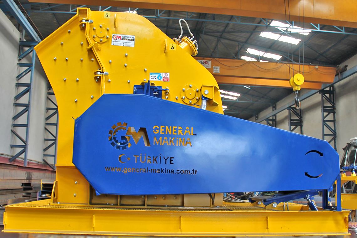 General Machine Secondary Impact Crusher, which has with two crushing chamber and all surfaces are covered with manganese crusher liners and materials DMK series medium and high materials; as limestone, dolomite, granite and basalt materials which is brought to the desired size at high capacity crusher rotor. They have hydraulic opens body and its provide easy installation advantages.