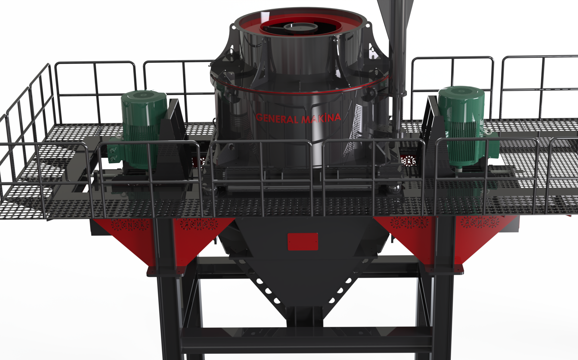 Las Trituradoras de Eje Vertical de General Makina son trituradoras que se utilizan para obtener arena y grava, triturando todo tipo de materiales abrasivos duros de tamaño mediano utilizados en la industria de minería y construcción. Se utilizan para obtener arena y grava de 0,5 mm. Estas son las trituradoras con alto contenido de arena y cubicidad. Esta es un tipo de trituradora de bajo costo y su costo de piezas de repuesto es muy bajo.