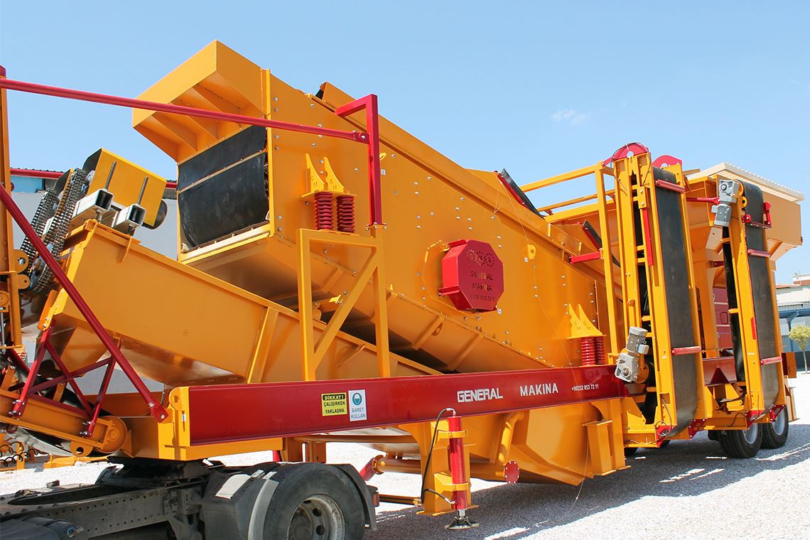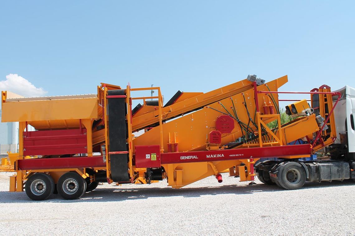 Le système de lavage et de criblage mobile General Makina GNR YM1650 a une capacité moyenne de 120 à 180 tonnes / heure.